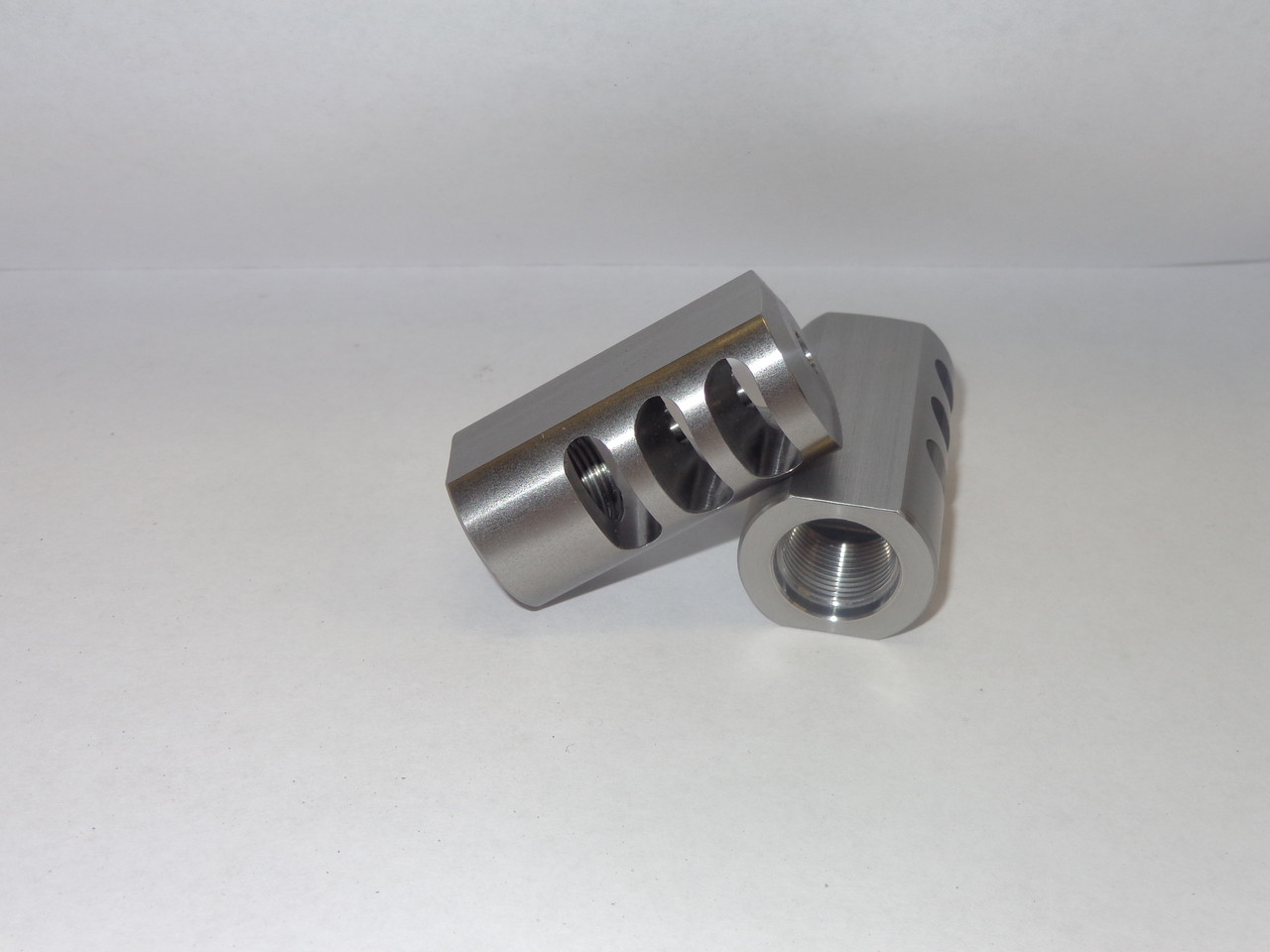 Loading... Please wait...Now fit a Muscle brake to your factory magnum rifle! Was designed to fit factory sporter weight barrel contours with muzzle dia. of .620" to .850". This brake is very close in size to the mini, just a tad longer for the increased port volume. This brake was designed to work with magnum cartridges, yet maintain a smaller profile. Where the original mini excelled with the smaller chamberings, this new design should be perfect for sporter barrels in WSM and standard Magnum cartridges. It will also reduce the recoil on the Ultra Mags to an acceptable level.